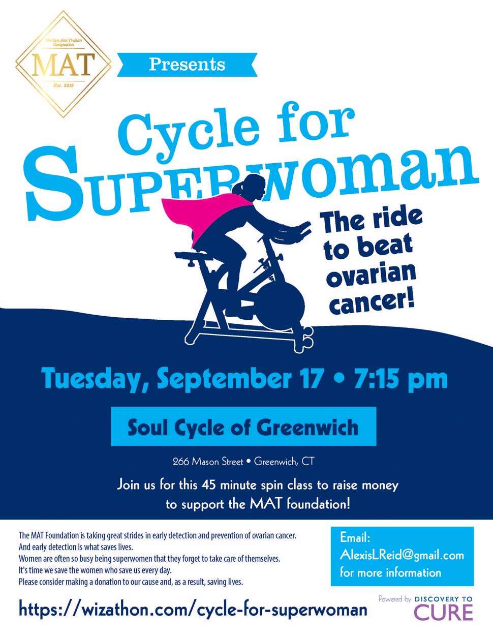 What: Cycle for Superwoman! Join us for a 45 minute spin class to beat ovarian cancer!