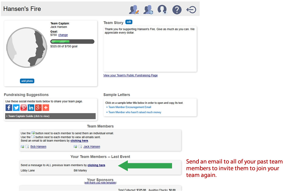 Once logged in, click the Team Management button to access your Team Fundraising Center.