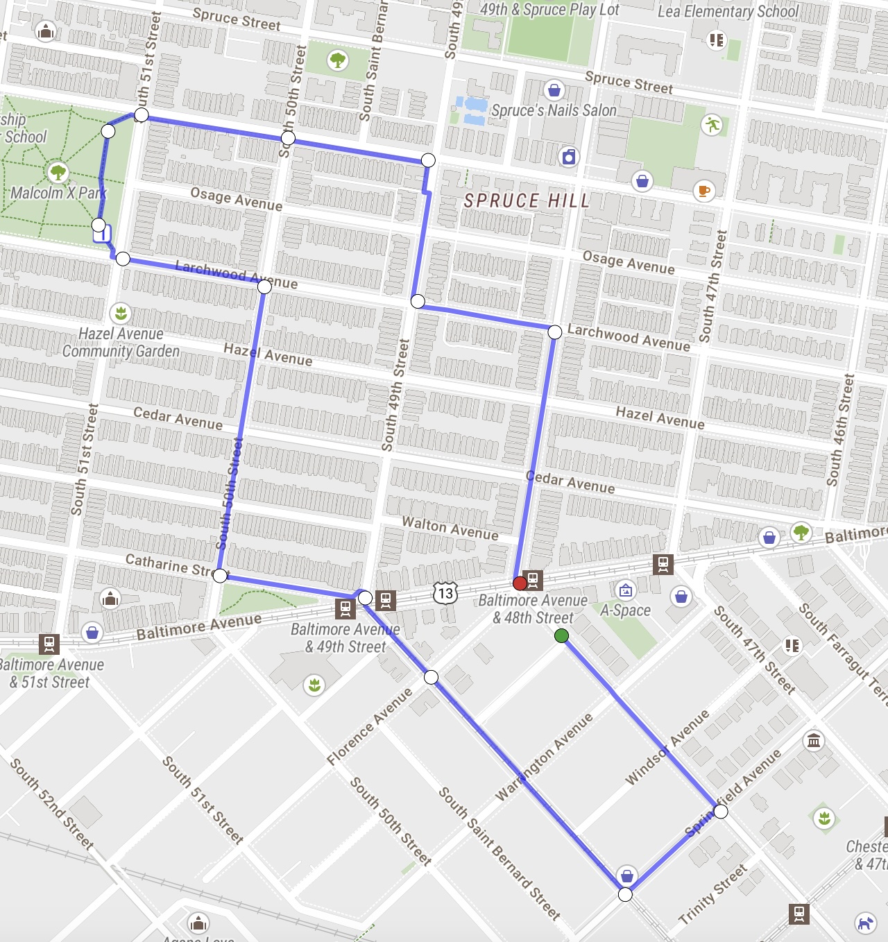 We will be meeting at the Calvary Center (801 S. 48th St.) Check in to pick up walk t-shirt starting at 10am, warm-up and roll call of teams starting at 10:30am, walk itself starting at 11am. See route below. At the opening gathering, we will have a table with art supplies to make a sign for the person you are walking in honor of, a face art table, drumming, and snacks. We will also have information available for you to get involved in local justice work.