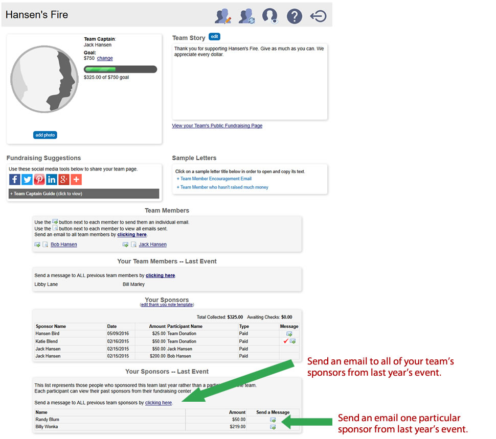 Once logged in, click the Team Management button to access your Team Fundraising Center.